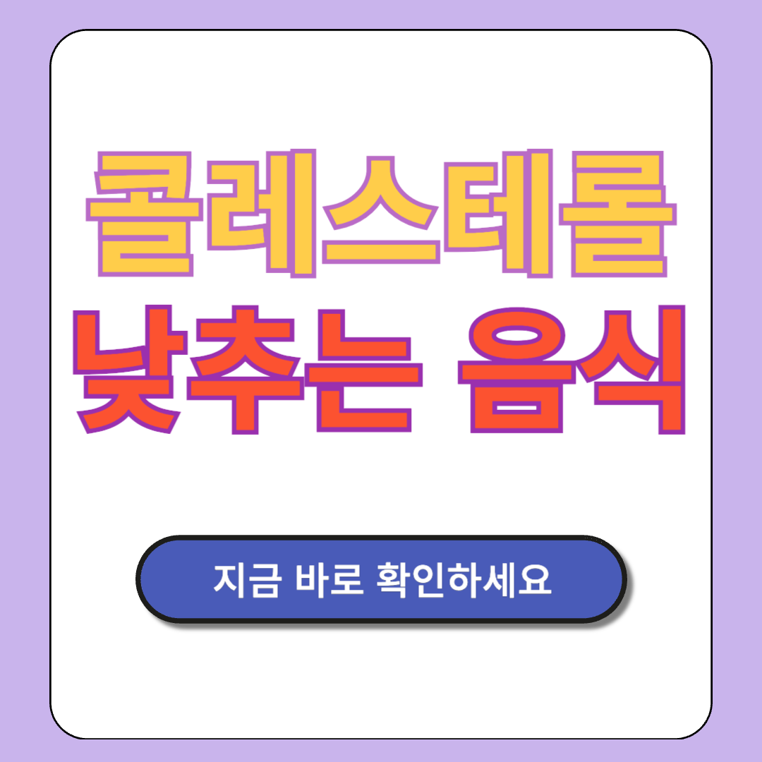 콜레스테롤 수치를 효과적으로 관리하는 것은 건강을 지키는 첫걸음입니다. 아래 버튼을 통해 콜레스테롤 빠르게 낮추는법을 확인하고, 쉽고 간편한 방법으로 콜레스테롤을 낮춰보세요.